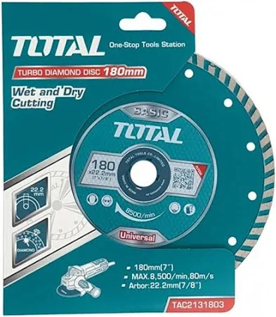 - Disco de corte diamantado tipo universal, turbo, ideal para cortes en ladrillo, cemento y cerámica.